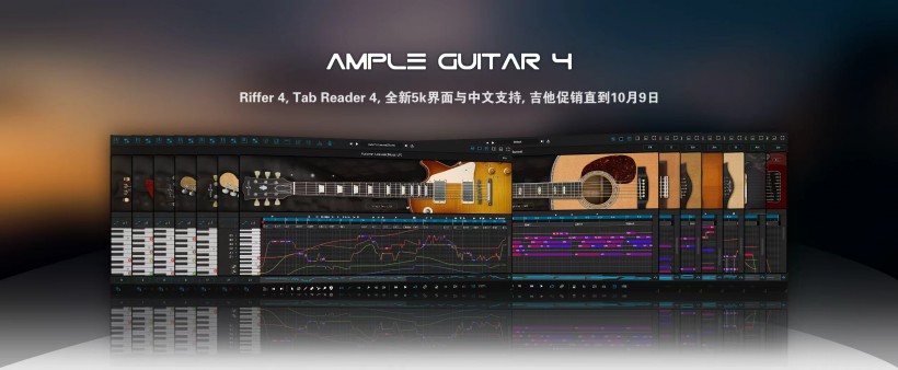 Ample Guitar系列75折優(yōu)惠直到 10月9日, 老用戶可享受額外九折優(yōu)惠。