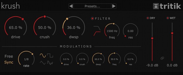 詳情 Tritik 為大家?guī)砹艘豢蠲赓M(fèi)的失真效果器 — Krush,適用于 IOS X & Windows。