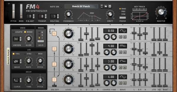 詳情FM4 是一個適用于 Reason 機(jī)架的 4 運(yùn)算器 FM 合成器。建模了來自 1980 年代的首個商業(yè) FM 合成器