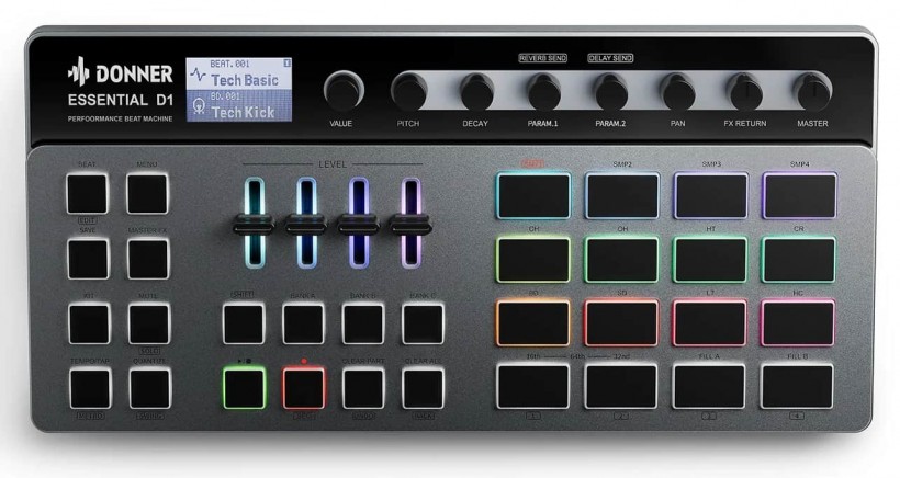 詳情B1 模擬貝司合成器的開發(fā)者 Donner 在 NAMM 2023 上展示了新的原型產(chǎn)品 — Essential D1 Dr