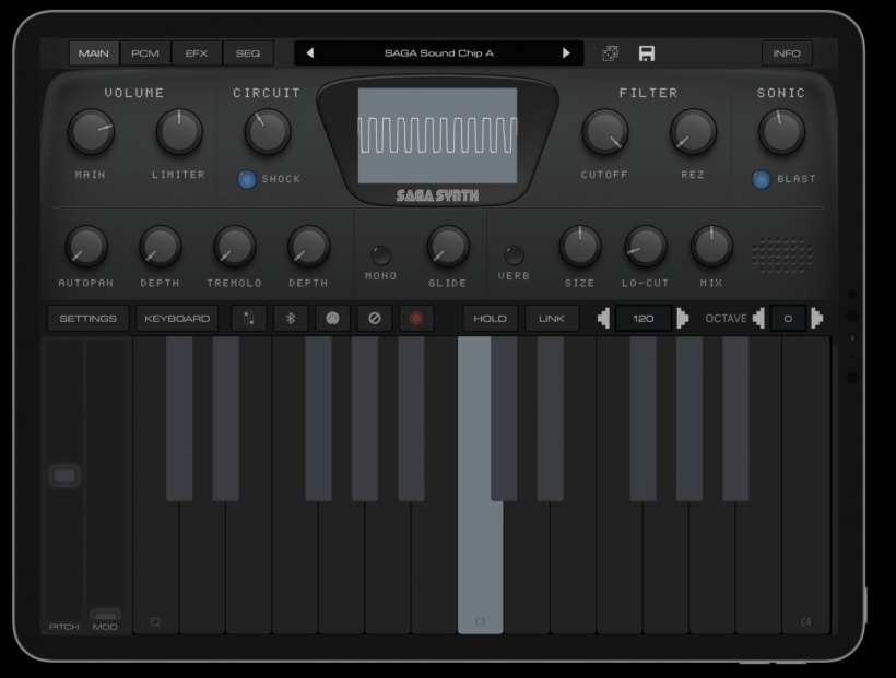詳情AudioKit Pro 開發(fā)了一個(gè) iOS 上的有趣復(fù)古 16 位視頻游戲合成器 SAGA Synth